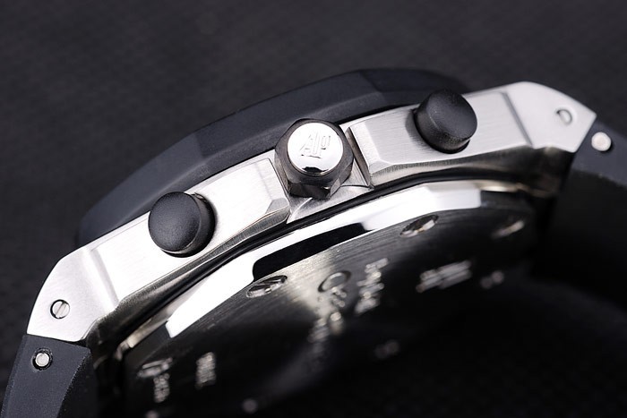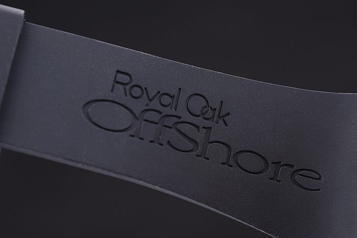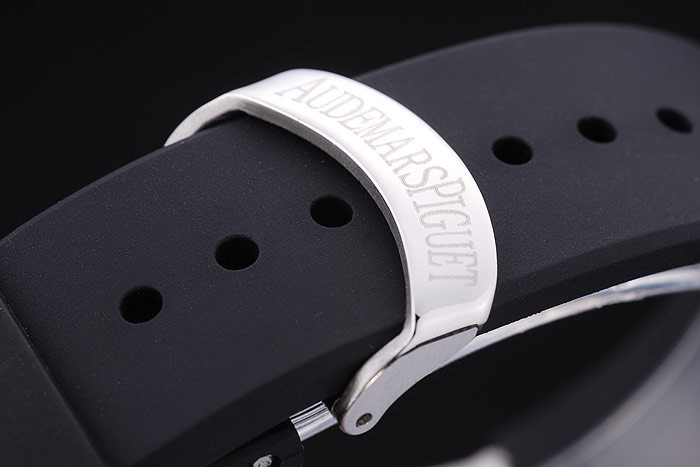 Bransoletka: czarny gumowy pasek z wytłoczoną cieplną Audemars Piguet Royal Oak Offshore Stamp i Audemars Piguet wpisane ze stali nierdzewnej Zakład z haczykiem