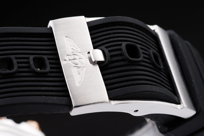 Bransoletka: żebrowany czarny gumowy pasek z grawerowaną stalą ze stali nierdzewnej z logo Breitling na górze