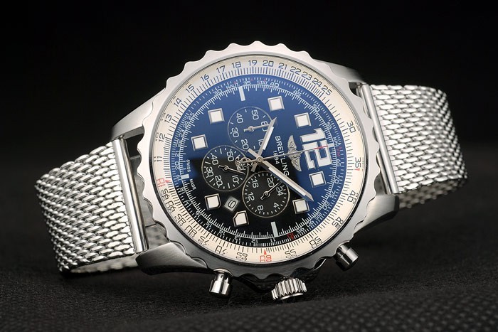 Ten zegarek ma kieliszek AR. Kolor twarzy pojawi się różne kolory w zależności od tego, jak światło spada na Itback: Polerowany stal ze stali nierdzewnej z Breitling Transocean Ryginania