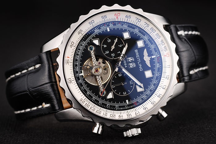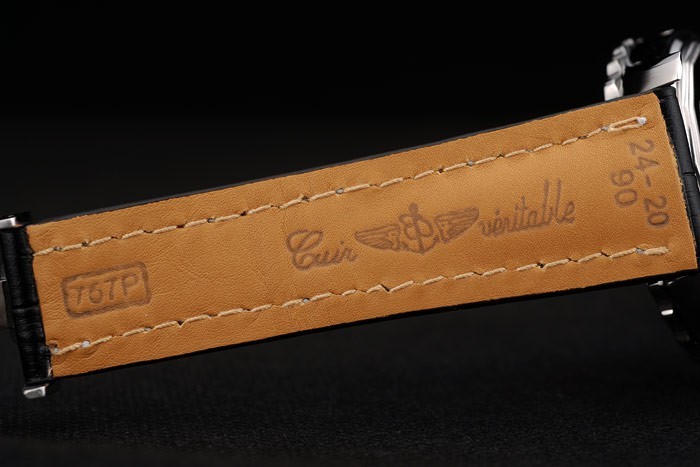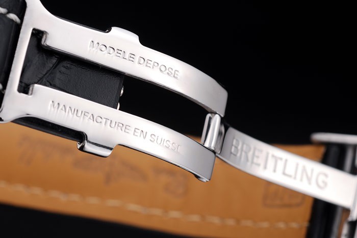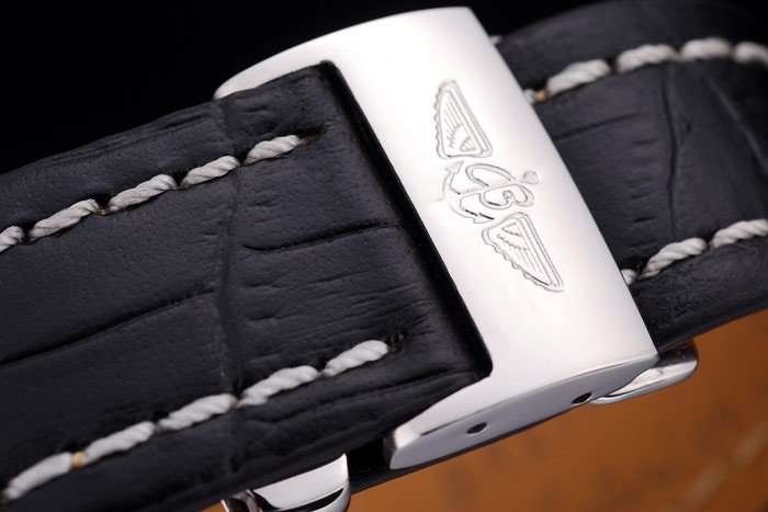 Bransoletka: ciepło wytłoczona nazwa Breitling i logo czarny skórzany pasek krokodyla z białą nitką i grawerowane logo ze stali nierdzewnej zapięcie