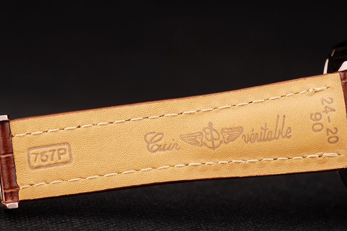 Bransoletka: wytłoczona ciepło Breitling Brown Krokodyl Skórzany pasek z białym szwem nici i logo z logo Breitling Grawed-w plastrowanym zapięciu Rose-Gold