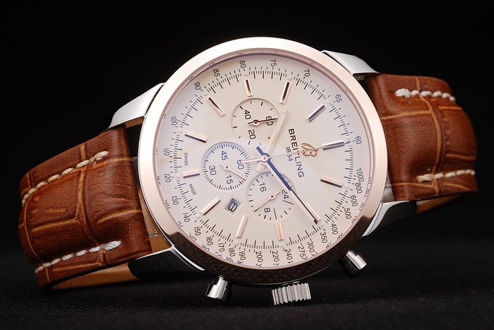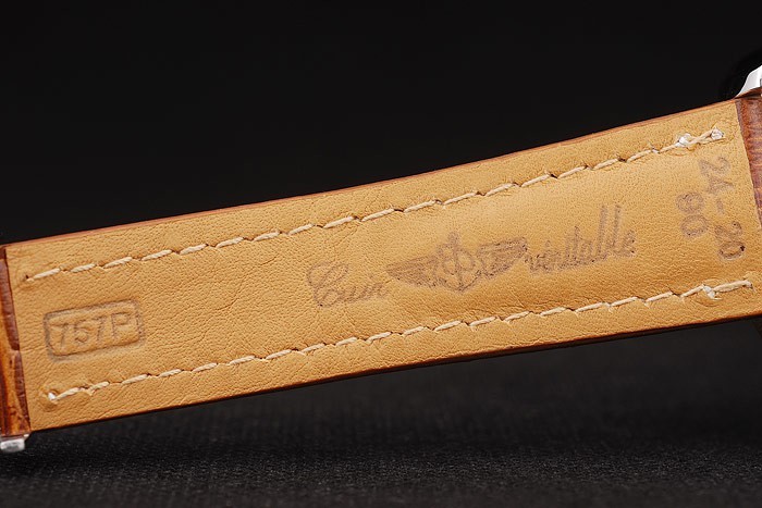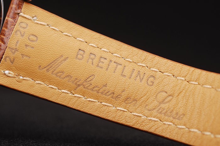 Bransoletka: wytłoczony ciepło Breitling Brown Krokodyl Skórzany pasek z białym szwaniem nici i logo z logo z logo Breitling Grawowane zapięcie ze stali nierdzewnej