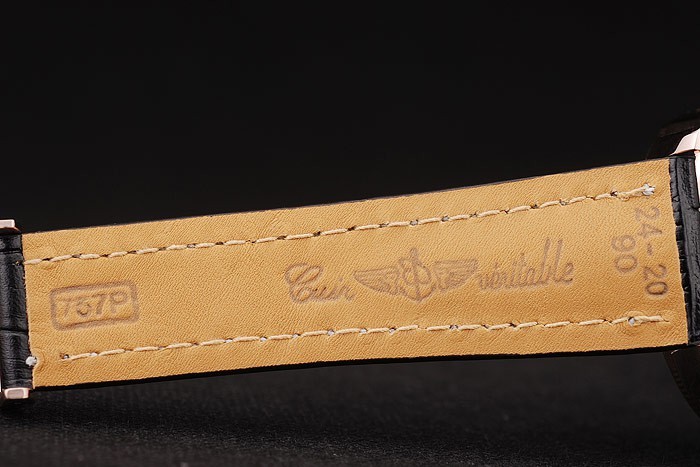 Bransoletka: Utłuszczony Breitling Breitling Black Crocodile Skórzany pasek z białym ściegiem nici i logo Breitling Grawatowane fałdowanie Rose-Gold Plane