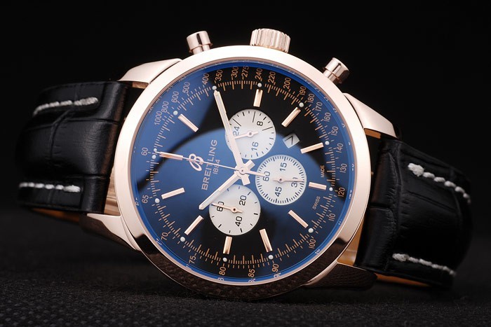 Ten zegarek ma kieliszek AR. Kolor twarzy pojawi się różne kolory w zależności od tego, jak światło spada na Itbacka: stal nierdzewna uderzenie z napisem Breitling