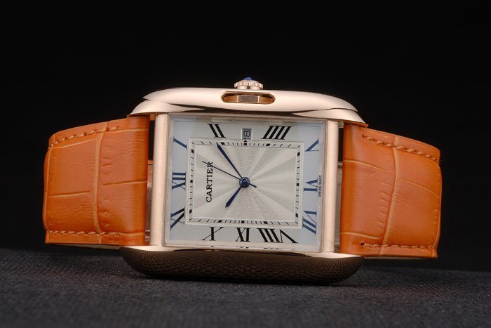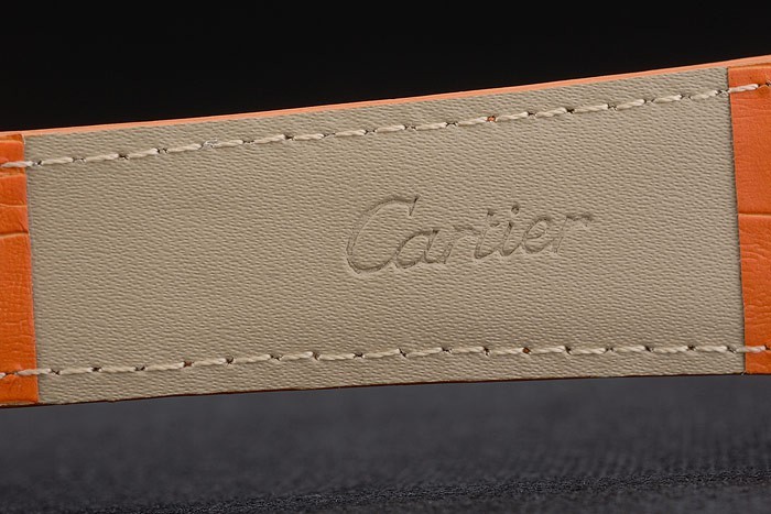 Bransoletka : Cartier ciepło wytłoczone pomarańczowe skórzany pasek krokodylowy z 18-karatowym gold-gold plamowane klamra zapiętej