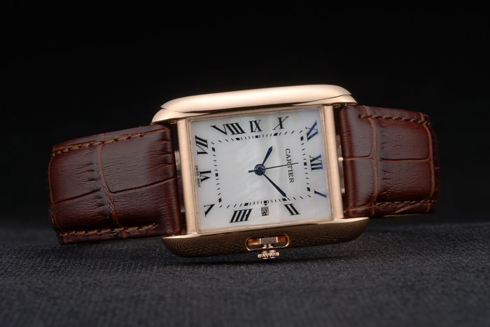 Bransoletka : Cartier ciepło wytłaczany brązowy kroplowy pasek krokodyla z 18-karatowym gold-gold plamowany klamra zapiętej