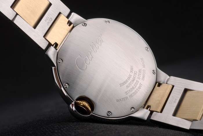 Powrót: szczotkowana stal ze stali nierdzewnej przykręcona z tyłu z grawerami Cartier