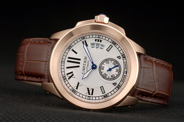 Bransoletka: Cartier ciepło wytłaczany brązowy kropkę krokodylową z różowym złotym zapięciem klamry