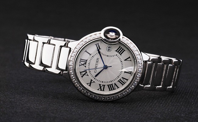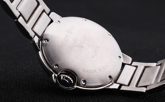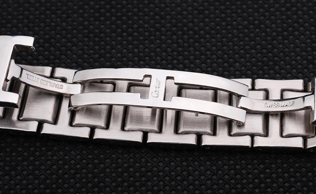 Z tyłu: śruba, solidna stal nierdzewna 440, grawerowana specyfikacjami Cartiera