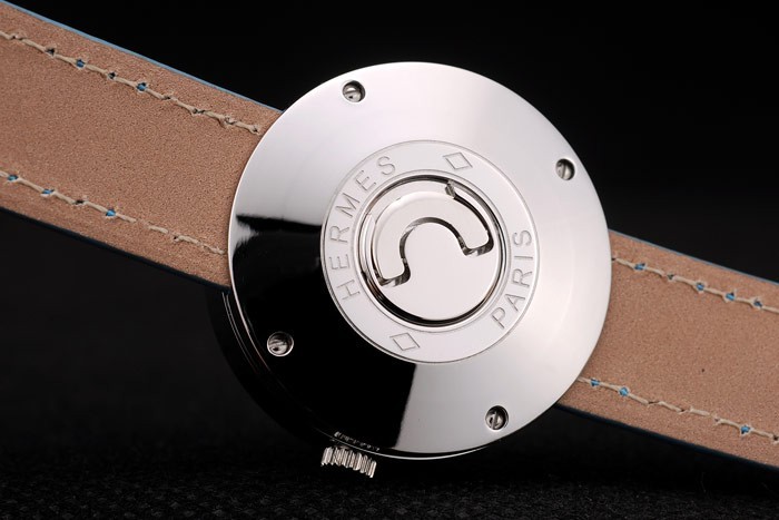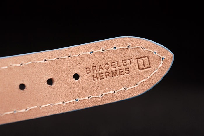 Bransoletka: jasnoniebieski skórzany pasek z wytłoczoną cieplną bransoletką stempla Hermes i Hermes Grawowane wypolerowane stalowe stalowe stalowe stali