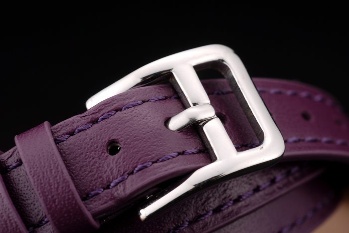 Bransoletka: Wydłużone fioletowe skórzane pasek z ciepłem Tłuszczone bransoletka znaczkowa Hermes i Hermes grawerowane wypolerowane stal nierdzewną zapięcie na bukienkę