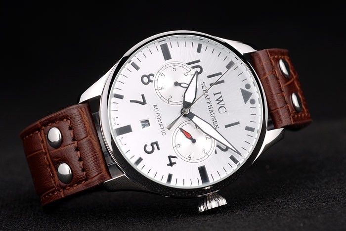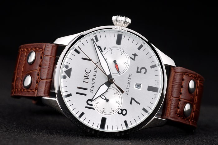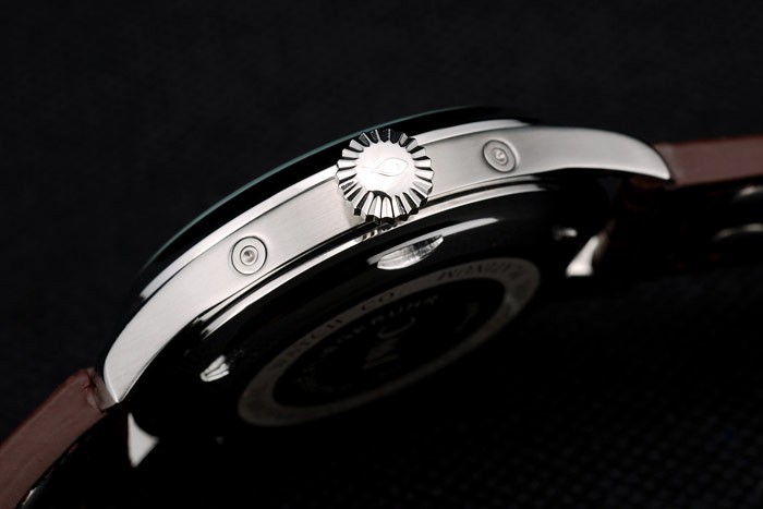 Bransoletka: IWC ciepło wytłoczony brązowy skórzany pasek krokodyla z grawerowanym przez IWC szczotkowanym szczotkowanym stalowym stalowym obciążeniem haczyka