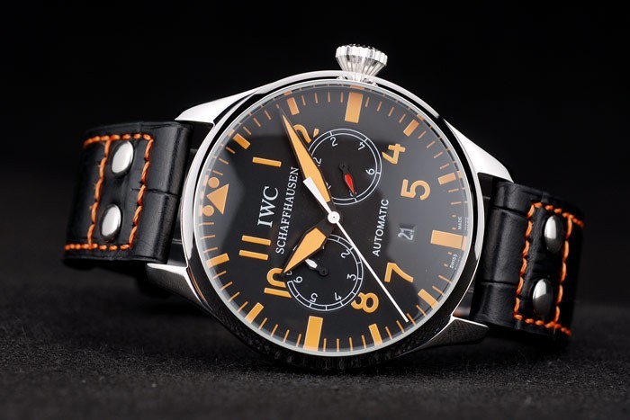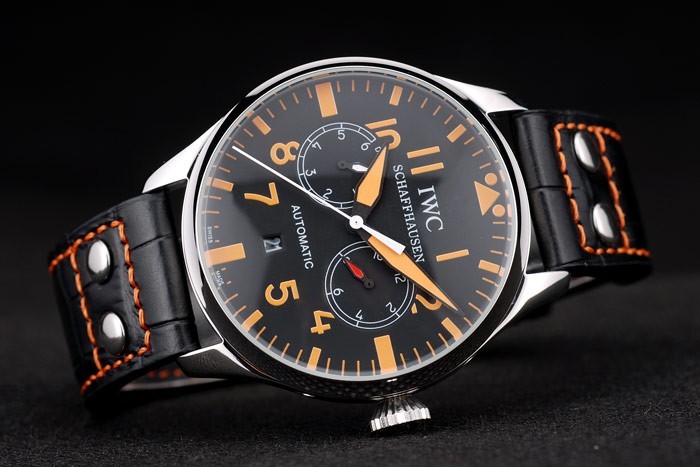 Bransoletka: IWC Expossed Black Crocodile skórzany pasek z pomarańczową nitką i grawerowaną szczotkowaną stalową stalową stalową zapięcie