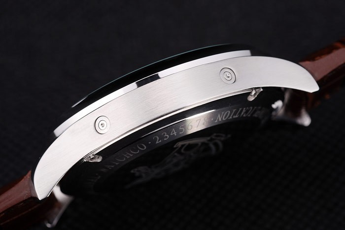 Korona: Wypolerowana korona w przecięciu ze stali nierdzewnej z grawerowaniem logo IWC i dwie mniejsze okrągłe korony przyciskowe po obu stronach