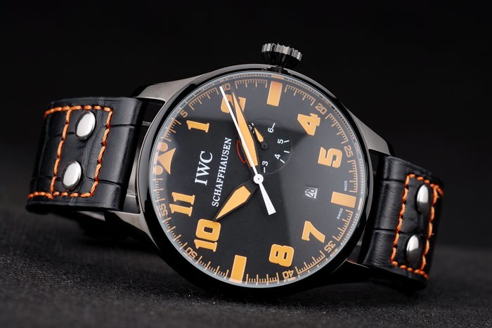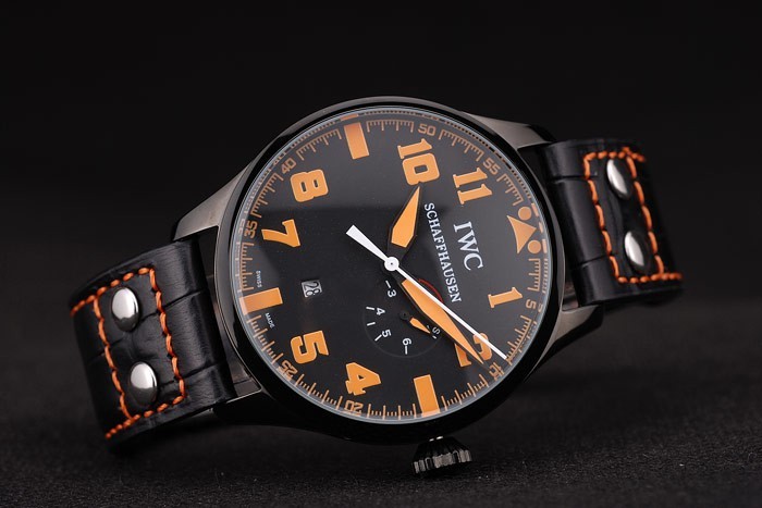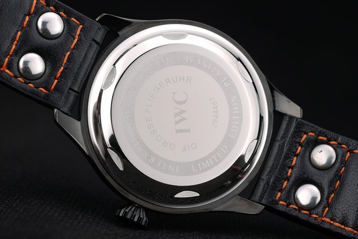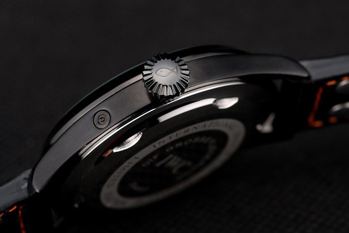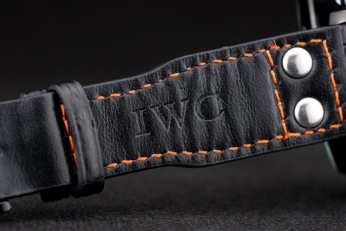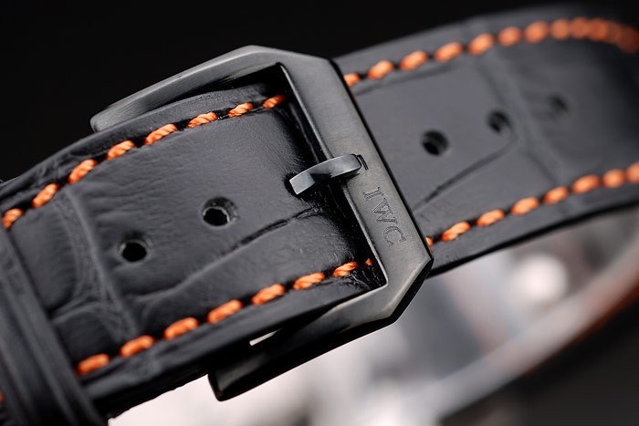 Bransoletka: IWC Expossed Black Crocodile Skórzany pasek z pomarańczową nitką szwu i grawerowaną jonową stalową stalową stalową stalową zapięcie