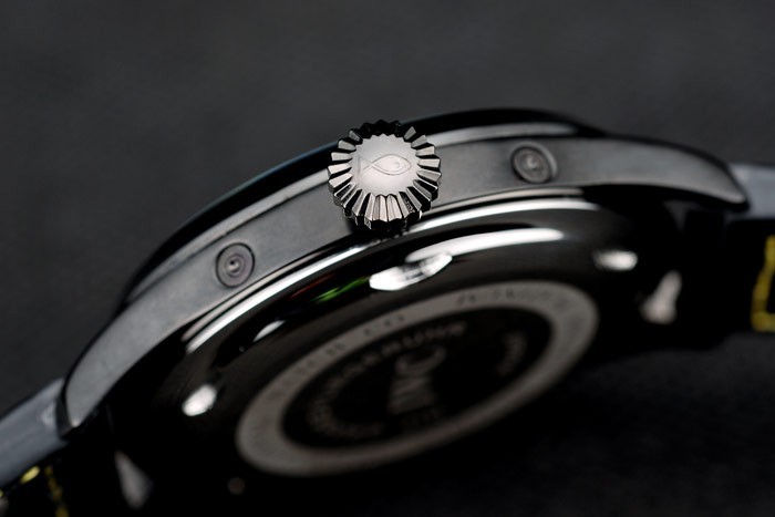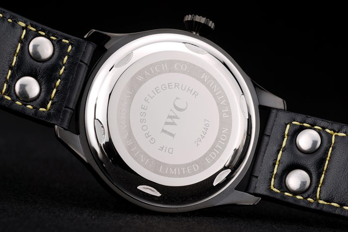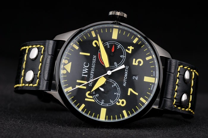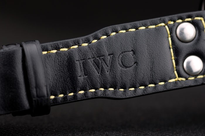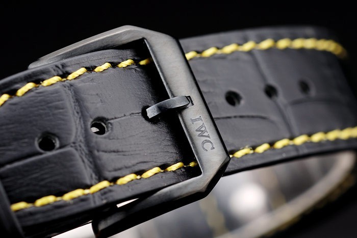 Bransoletka: IWC Expossed Black Crocodile Skórzany pasek z żółtą nitką szwy i grawerowaną jonową stalową stalową stalową stalową zapięcie