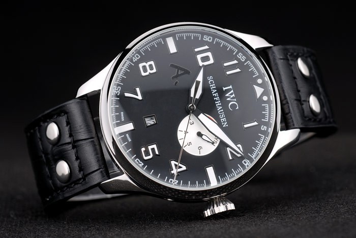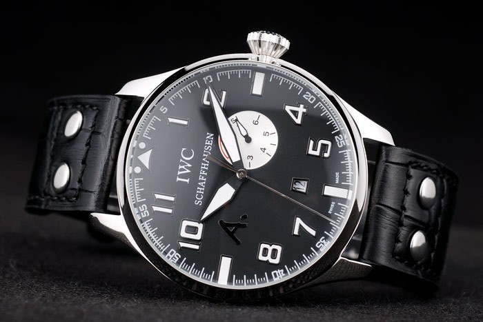 Bransoletka: IWC Expossed Black Crocodile skórzany pasek z grawerowanym przez IWC szczotkowanym szczotkowanym stali nierdzewnym zapięcie za haczyk
