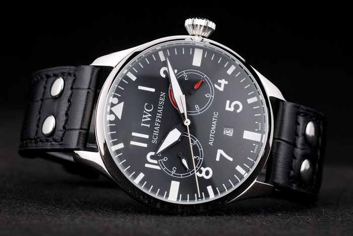 Bransoletka: IWC Expossed Black Crocodile skórzany pasek z grawerowanym przez IWC szczotkowanym szczotkowanym stali nierdzewnym zapięcie za haczyk