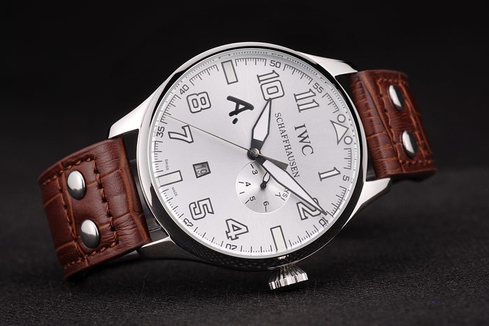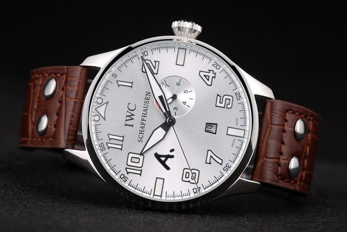 Bransoletka: IWC ciepło wytłoczony brązowy skórzany pasek krokodyla z grawerowanym przez IWC szczotkowanym szczotkowanym stalowym stalowym obciążeniem haczyka