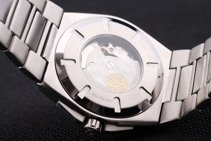 Powrót: wypolerowany stal ze stali nierdzewnej z tyłem z napisem IWC