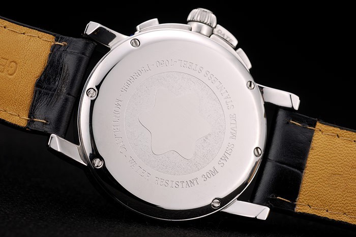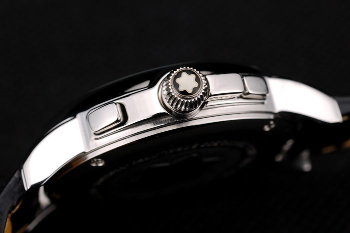 korona: polerowana stal nierdzewna korona z logo Montblanc i dwie wypolerowane korony przyciskowe ze stali nierdzewnej po prawej Korona po lewej