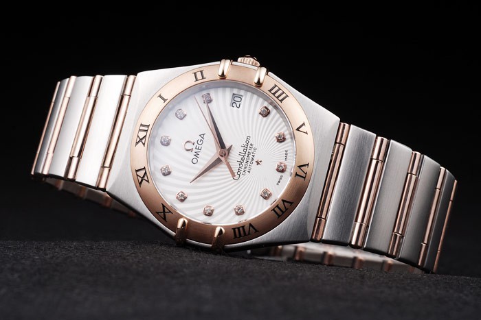ramka: Rose-Gold Bezel z czarnymi rzymskimi markerami godzinowej