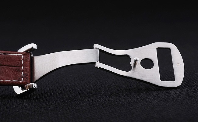 Bransoletka: Brązowy skórzany pasek krokodyla z białym szwem i logo Omega wygrawerowane ze stali nierdzewnej zapięcie za haczyek