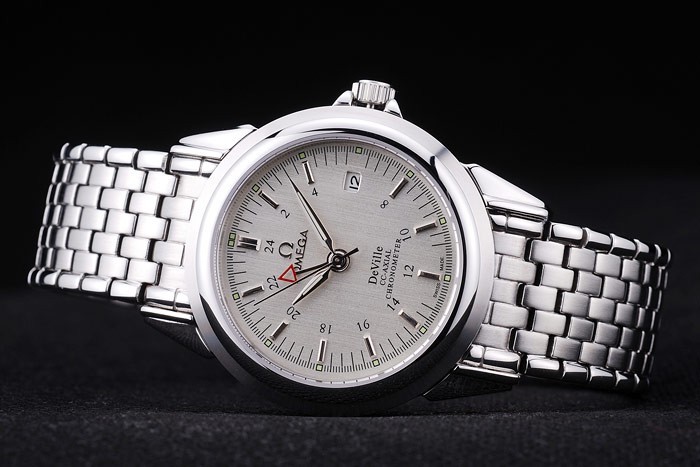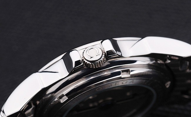 korona: polerowana korona w przecięciu stali nierdzewnej z logo omega