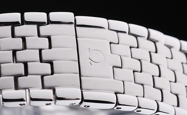 Bransoletka: szczotkowana i wypolerowana bransoletka ze stali nierdzewnej z grawerkowanym logo Omega Hidden Clap