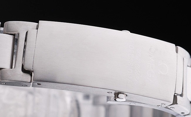 bransoletka: szczotkowana nierdzewna nierdzewna Bransoletka stalowa z nazwą Omega i logo wpisane na przycisk Zwolnienie zapięcia