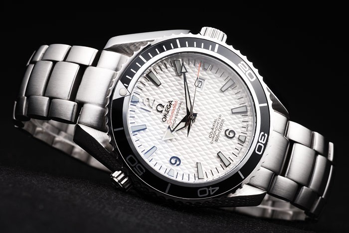 Crown: Brushed stainless steel cutwork crown with Omega logo plus an additional crown on the opposite top corner