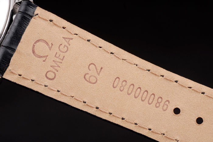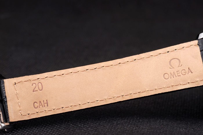 Bransoletka: czarny skórzany pasek krokodyla z wytłoczonym na ciepło znaczek omega i zapięcie ze stali nierdzewnej z logo Omega na górze