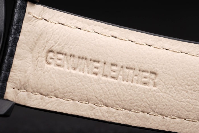 Bransoletka: czarny skórzany pasek z białym szwem i wytłoczonym ogrzewaniem Stamp Luminor Panerai oraz opłacona jonowa stalowa stalowa zapięcie z hak Br>Bransoletka Długość: 23 x 10 mm