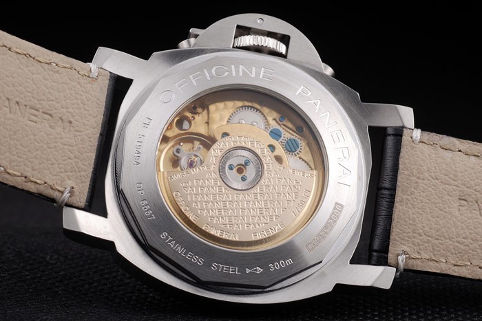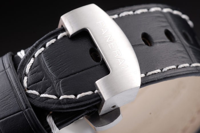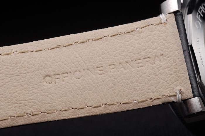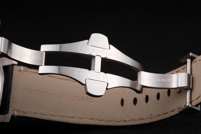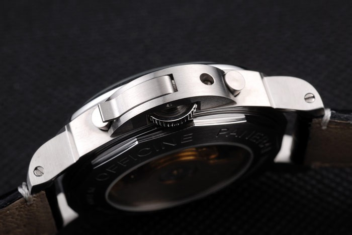Ten zegarek ma kieliszek AR. Kolor twarzy pojawi się różne kolory w zależności od tego, jak światło spada na Itbacka: szczotkowane stali nierdzewne uderzanie z warsztatami Panerai Grawerowanie
