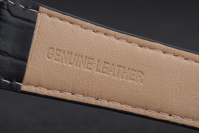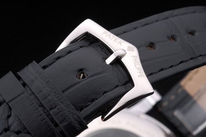 Bransoletka: Czarny skórzany pasek krokodyla z wytłoczonym pieczęcią Parlippe i wypolerowaną stali nierdzewną zapięcie na grawerowanie pekru Philippe