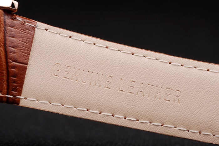 Bransoletka: Brązowy skórzany pasek krokodyla z wytłoczonym pieczęcią Parlippe i 18-krotnie różowe złoto spęknięte haczyka z grawerowaniem Pekiny Philippe