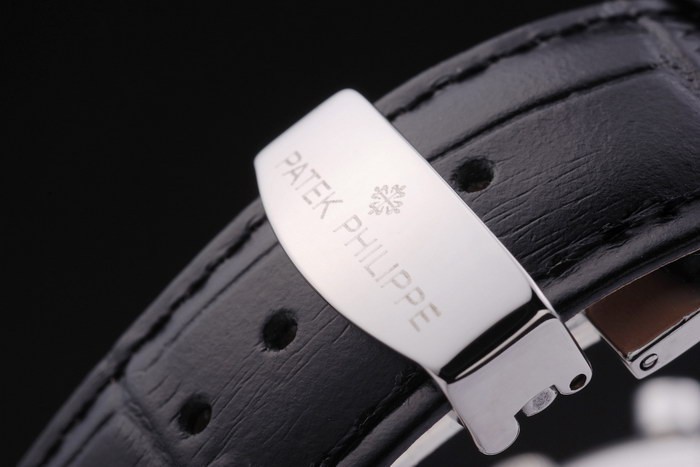 Bransoletka: Czarny skórzany pasek z pieczęcią Parpe i fałdowanie ze stali nierdzewnej w zapięciu