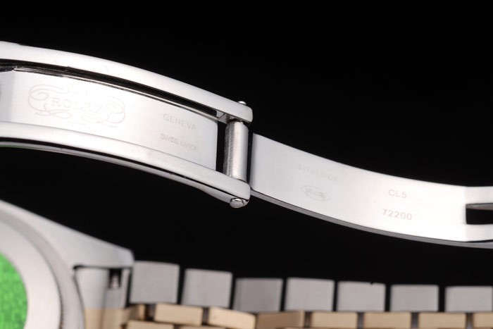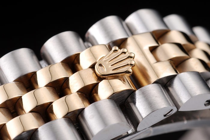 Bransoletka: Dwie stonowana bransoletka ogniwa w szczotkowanej stali ze stali nierdzewnej i 18 -karatowa stalowa ze stali z żółtą złotą z grawerowanym rolexem ukrytym zapięciem wyświetlającym logo Rolex