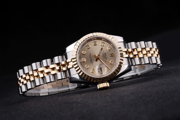 Bransoletka: Dwie stonowana bransoletka ogniwa w polerowanej stali ze stali nierdzewnej i 18 -karatowa stalowa stal ze złotem z grawerowaniem Rolexa ukryte zapięcie wyświetlające logo Rolex