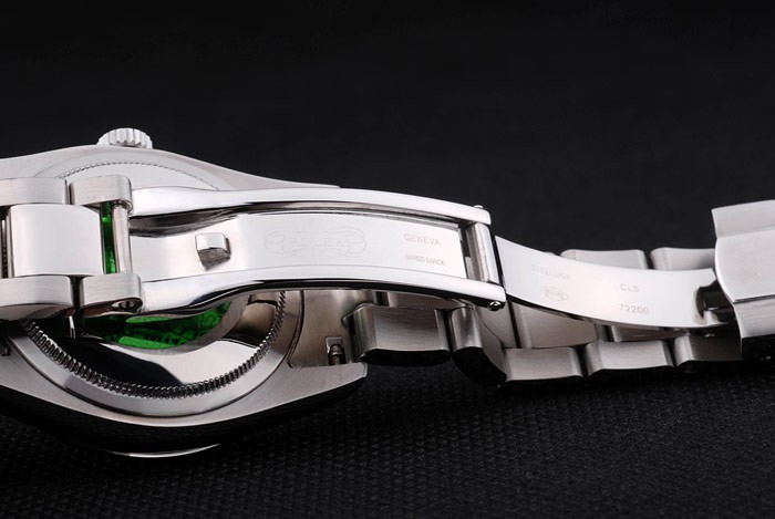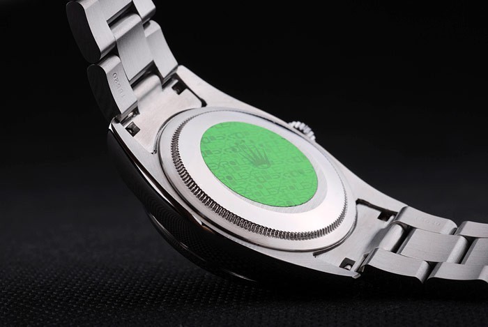 Powrót: obudowa ze stali nierdzewnej z tyłu z zielonym znaczkiem logo Rolex