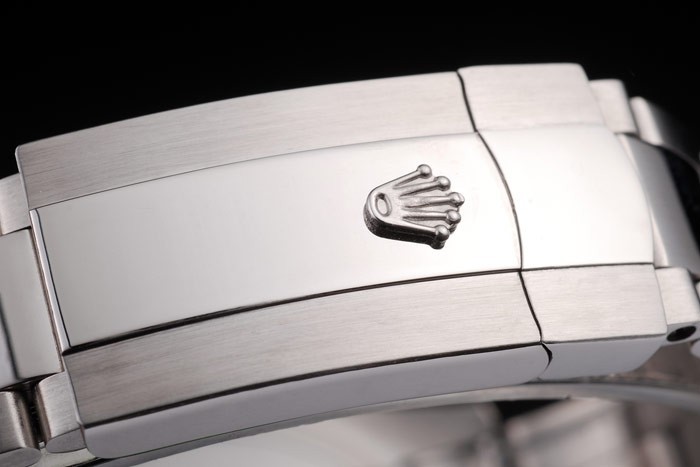 korona: polerowana stalowa stalowa korona z logo Rolex