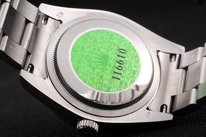 Powrót: obudowa o pchanie ze stali nierdzewnej z tyłu z zielonym znaczkiem logo Rolex