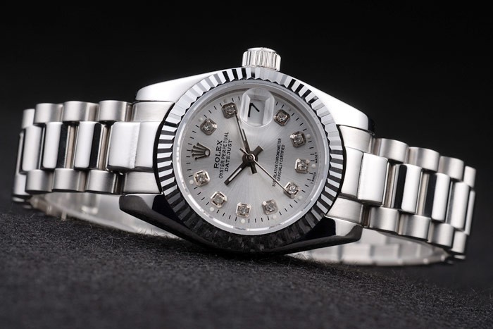 korona: polerowana stalowa stalowa korona z logo Rolex