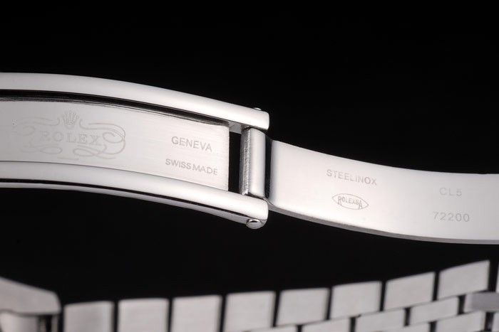 Bransoletka: Szczotkowana bransoletka linku ze stali nierdzewnej z grawerowanym Rolexem ukrytym zapięciem wyświetlającym logo Rolex