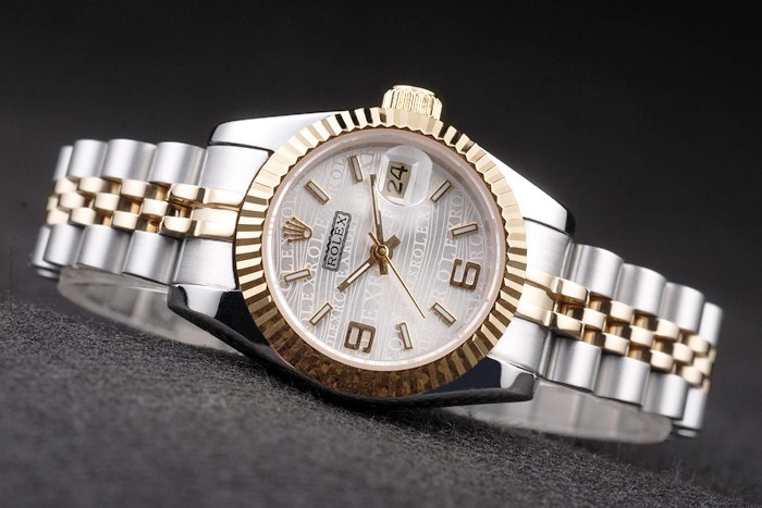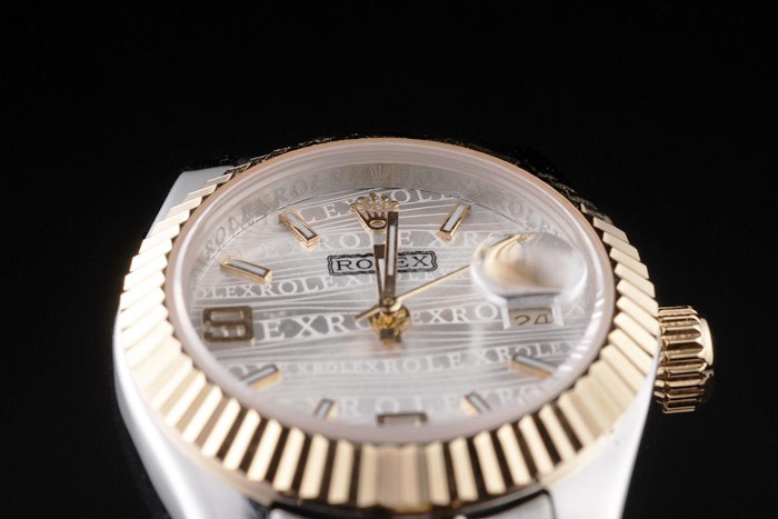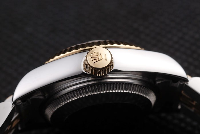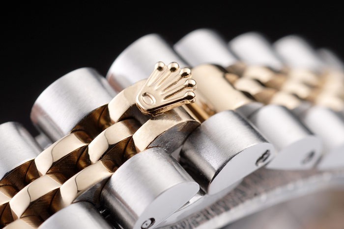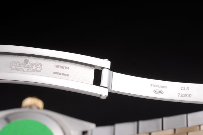 Bransoletka: Dwie stonowana bransoletka ogniwa w szczotkowanej stali ze stali nierdzewnej i 18 -karatowa stalowa ze stali z żółtą złotą z grawerowanym rolexem ukrytym zapięciem wyświetlającym logo Rolex
