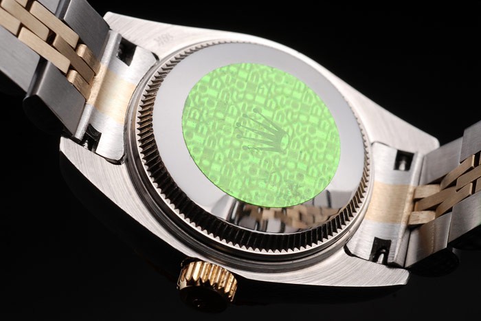 Powrót: obudowa o pchanie ze stali nierdzewnej z tyłu z zielonym znaczkiem logo Rolex