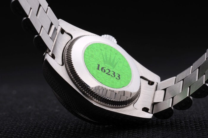 Powrót: obudowa o pchanie ze stali nierdzewnej z tyłu z zielonym znaczkiem logo Rolex