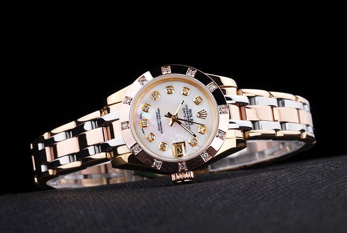 Bransoletka: Dwie stonowana fantazyjna bransoletka ogniwa w 18-karatowej stali nierdzewnej stali nierdzewnej i polerowanej stali nierdzewnej z Rolex Grawerowanie ukryte zapięcie wyświetlające logo Rolex