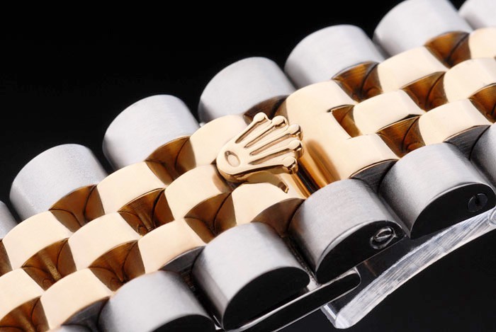 Bransoletka: Dwie stonowana bransoletka ogniwa w szczotkowanej stali ze stali nierdzewnej i 18 -karatowa stalowa stalowa złota z grawerowaniem Rolexa ukryte zapięcie wyświetlające logo Rolex