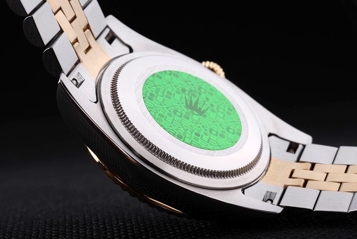 Powrót: obudowa ze stali nierdzewnej z tyłu z zielonym znaczkiem logo Rolex